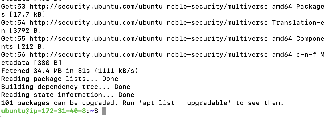 우선 패키지 리스트를 최신화 하기 위해 apt update를 진행